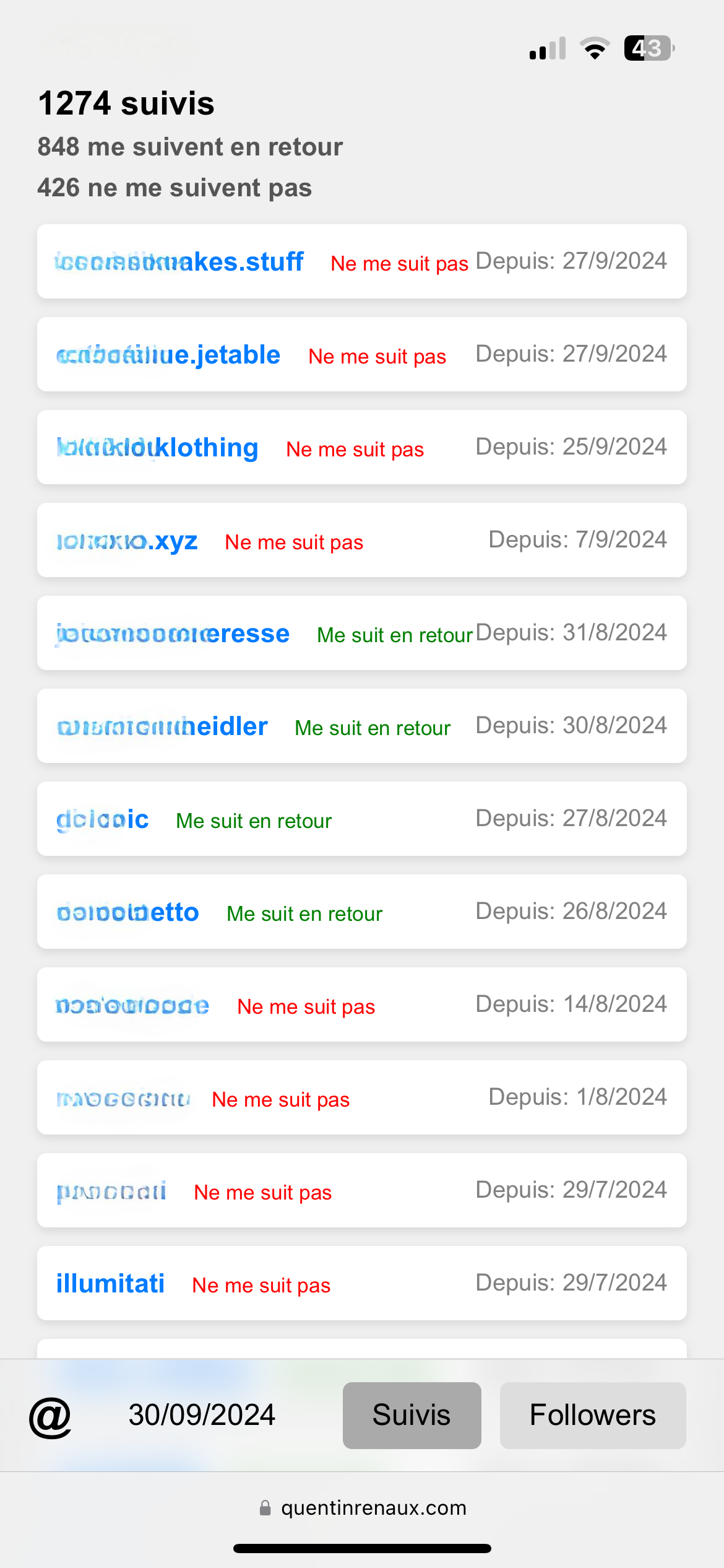 • Gestion des relations : En comprenant qui te suit mais que tu ne suis pas, tu peux ajuster ta stratégie d’engagement avec ta communauté.