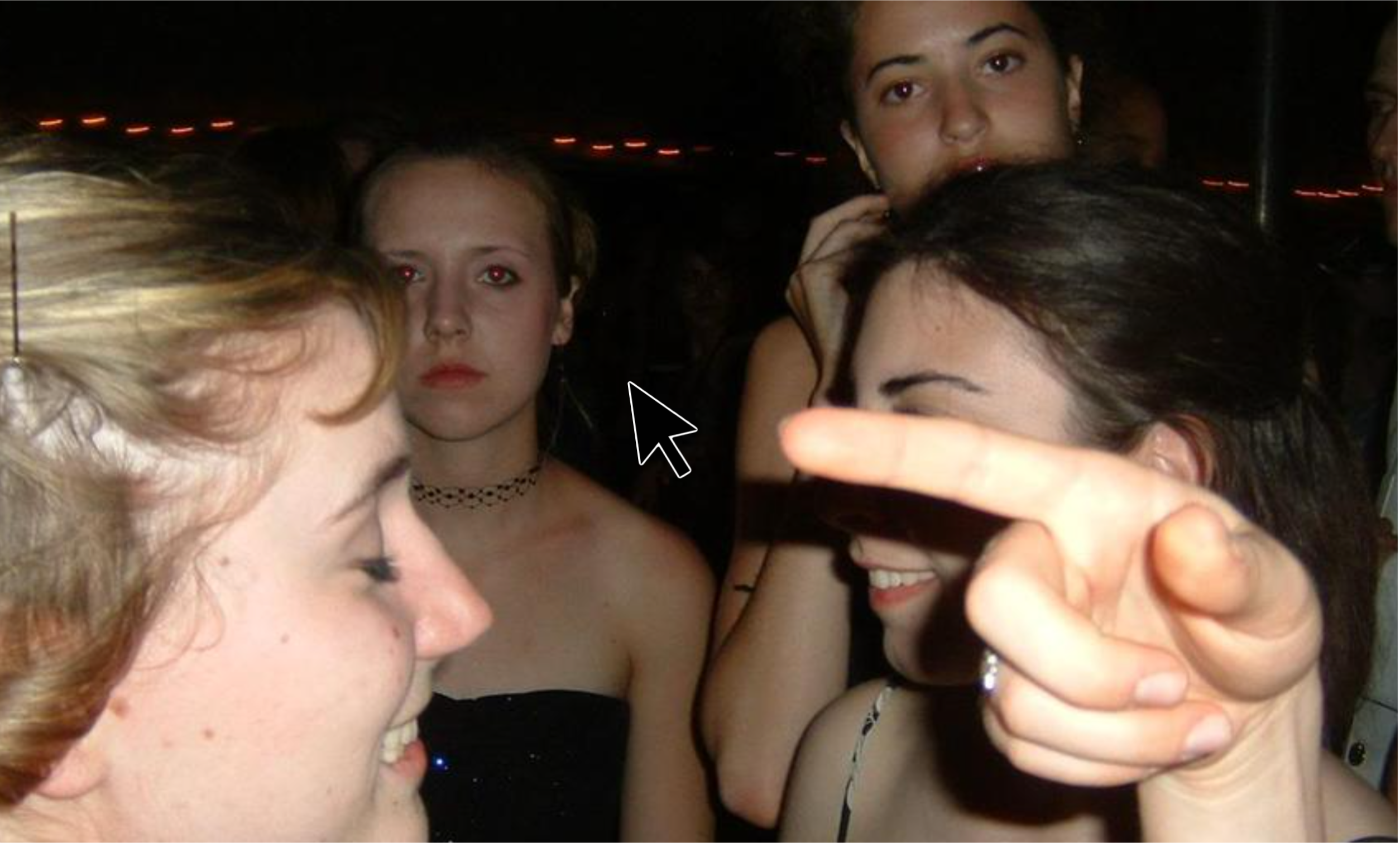 Les créateurs de Pointer Pointer ont compilé une énorme base de photos random d’Internet : des clichés amateurs très Y2K, avec un flash brutal, des looks 2000, des poses absurdes… On dirait une soirée post-bac où les appareils ne savaient pas encore corriger les yeux rouges.